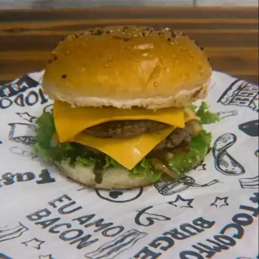Pão brioche, alface, tomate, dois hamburgueres caseiros, duas camadas de bacon, duas fatias de queijo cheddar e barbecu... Ver completo